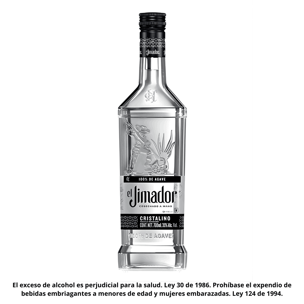 Tequila El Jimador reposado cristalino de 700 ml, de apariencia cristalina, limpia y brillante, de aroma suave que al paladar es de mediana a gran persistencia, y un final que invita a seguir disfrutando su extraordinario sabor. Es producido directamente de la jima del agave 100% azul tequilana weber, destilado meticulosamente y cuidando cada detalle en Amatlán Jalisco para darle ese sabor suave y versátil.